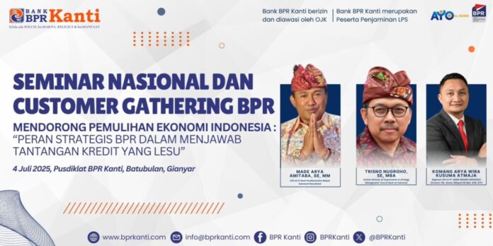 Dalam semangat mempererat sinergi antar Bank Perekonomian Rakyat (BPR) serta mendorong kontribusi nyata bagi pemulihan ekonomi Indonesia, PT. BPR Sukawati Pancakanti (BPR Kanti) menyelenggarakan Seminar Nasional & Gathering BPR ArisanKU 2025 bertajuk “Menjawab Tantangan Kredit dan Mendorong Pemulihan: Strategi BPR Menghadapi Lesunya Kredit dan Antisipasi CKPN”.