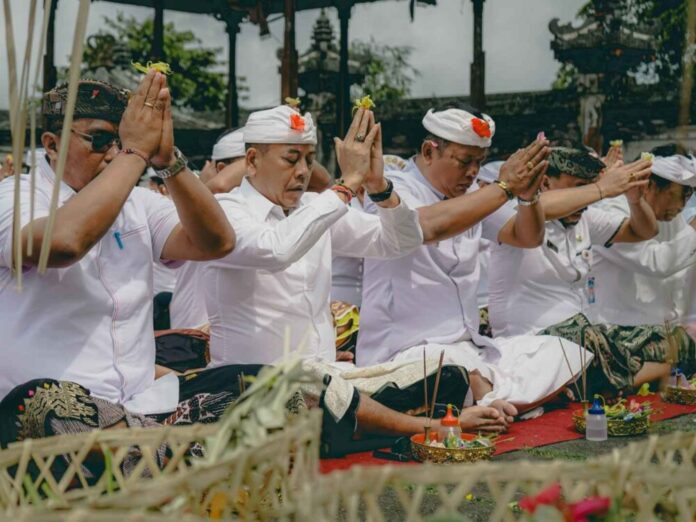 Dalam suasana khidmat, Bupati dan Wakil Bupati Karangasem bersama jajaran pimpinan daerah memohon tuntunan agar arah pembangunan daerah sejalan dengan visi besar Bali Era Baru yang mengedepankan keseimbangan antara parhyangan, pawongan, dan palemahan.