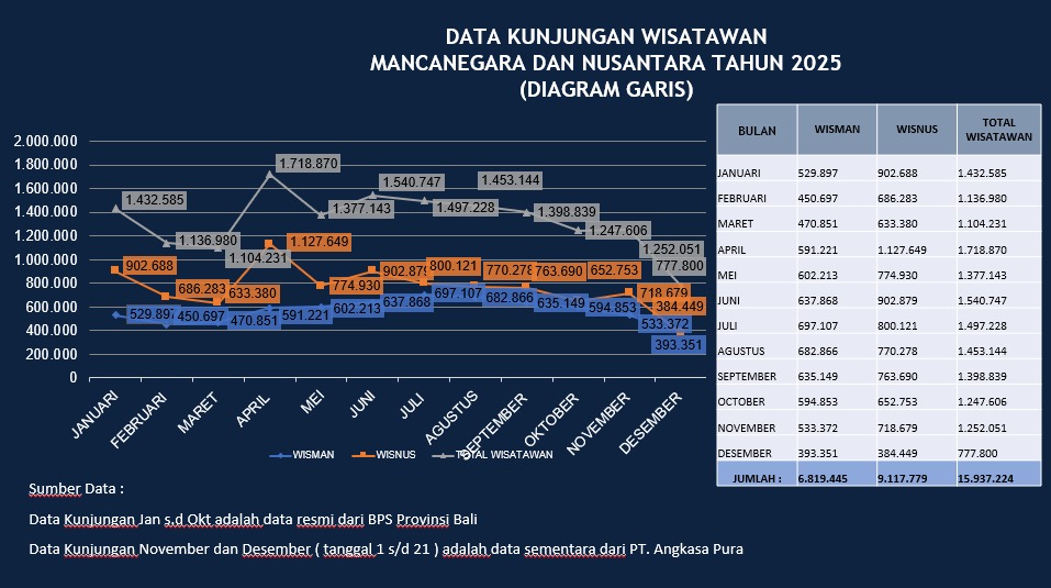 Foto: Data jumlah wisatawan yang berkunjung ke Bali.