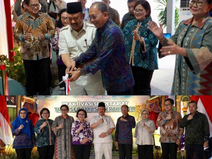 Foto: Menteri PPN)/Kepala Bappenas RI, Rachmat Pambudy, didampingi Gubernur Koster, saat meresmikan reaktivasi Sekretariat Transformasi Ekonomi Kerthi Bali (EKB) di area Kantor Bappeda Provinsi Bali, Rabu (15/10/2025).