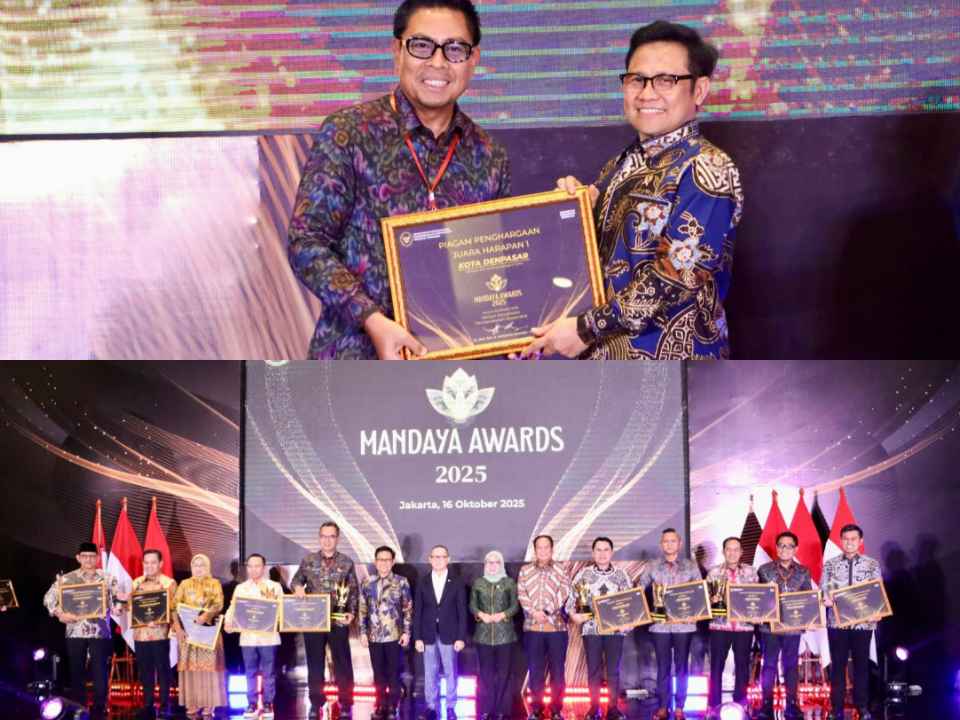Pemerintah Kota Denpasar kembali menorehkan prestasi di tingkat nasional dengan meraih Mandaya Awards 2025 dari Kementerian Koordinator Pemberdayaan Masyarakat Republik Indonesia. Penghargaan tersebut diserahkan langsung oleh Menko Pemberdayaan Masyarakat, A. Muhaimin Iskandar, kepada Wakil Wali Kota Denpasar, I Kadek Agus Arya Wibawa, dalam acara puncak Mandaya Awards 2025 yang digelar di Ballroom Plaza Jamsostek, Jakarta, Kamis (16/10/2025).