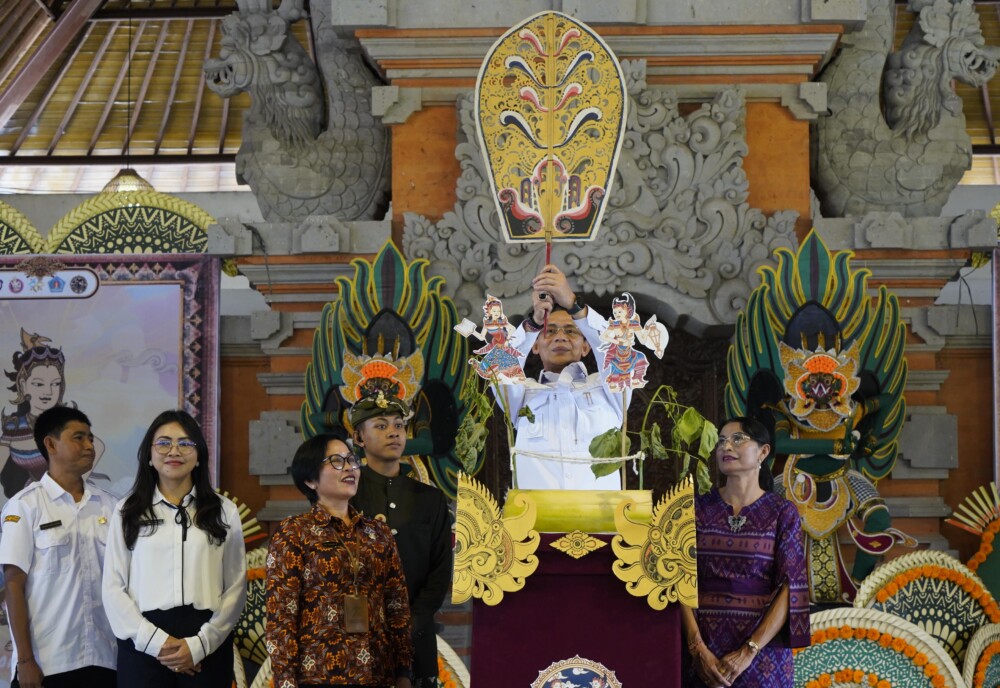 Bupati Klungkung I Made Satria resmi membuka Pemilihan Duta Genre (Generasi Berencana) Tingkat Kabupaten Klungkung Tahun 2026 di Balai Budaya Ida I Dewa Agung Istri Kanya, Rabu (22/4/2026). Pembukaan ditandai dengan penancapan Wayang Kayonan sebagai simbol dimulainya ajang pembinaan generasi muda tersebut.