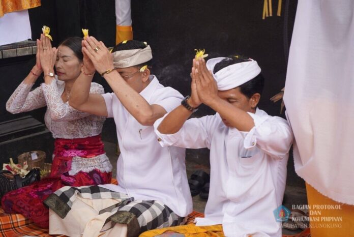 Pagi itu, Bupati Satria turut mengikuti Karya Ngenteg Linggih Kemulan Tangkas Kori Agung di Banjar Sidewayah, Desa Adat Panca Mandala Gita, Desa Klumpu. Kehadiran beliau bersama warga menambah suasana sakral di tengah prosesi yadnya.