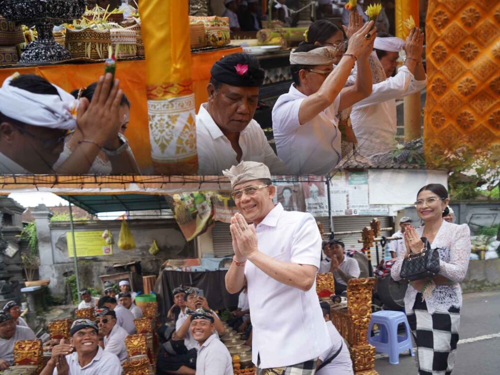 Bupati Klungkung I Made Satria hadir bersama Ketua TP-PKK Ny. Eva Satria. Keduanya datang untuk ngaturang bakti serta menghaturkan punia sebagai wujud sradha dan bhakti kepada Ida Bathara sesuhunan. Kehadiran mereka sekaligus menjadi bentuk dukungan terhadap pelaksanaan yadnya yang diampu oleh krama pengempon pura.