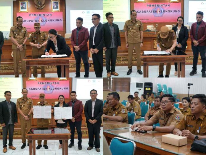Foto: Bupati Satria saat menandatangani dua perjanjian kerja sama strategis yang berlangsung di Ruang Rapat Praja Mandala, Kantor Bupati Klungkung.