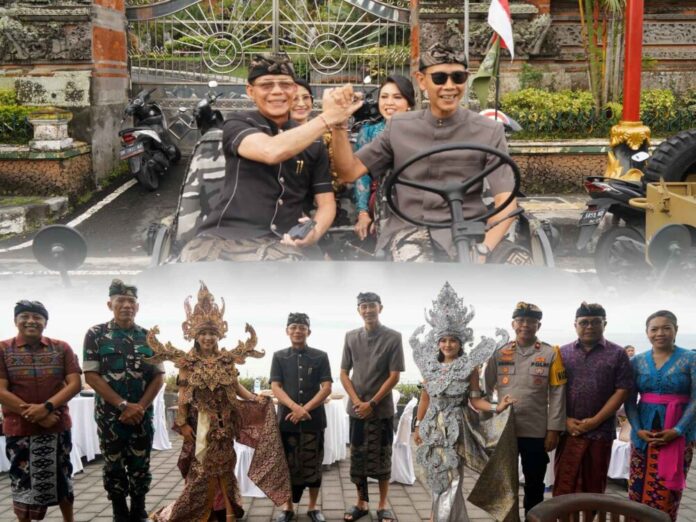 Foto: Bupati Klungkung, I Made Satria, bersama Wakil Bupati Tjok Surya, saat memimpin konvoi Jeep klasik semarakkan Festival Goa Lawah di Kecamatan Dawan, Kabupaten Klungkung, Sabtu (22/11).