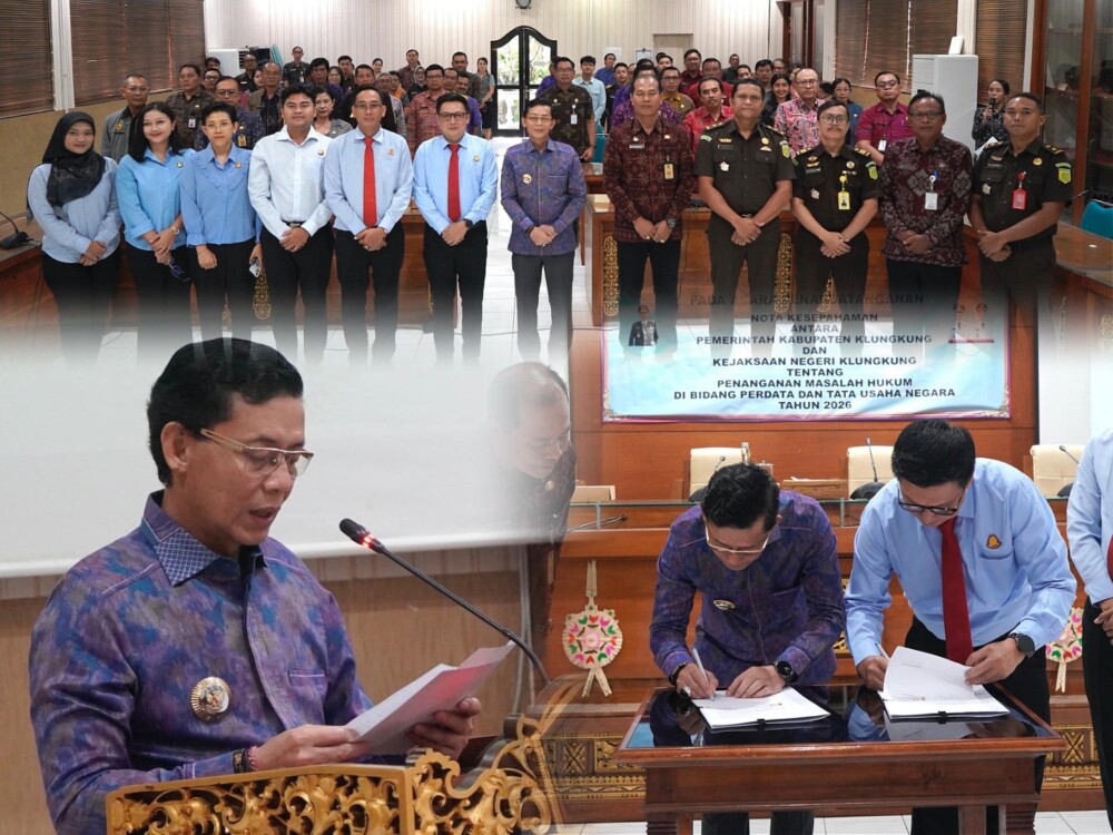 Pemerintah Kabupaten Klungkung memperkuat fondasi tata kelola pemerintahan yang taat hukum melalui kerja sama strategis dengan Kejaksaan Negeri Klungkung. Komitmen tersebut diwujudkan lewat penandatanganan Nota Kesepahaman (MoU) tentang penanganan permasalahan hukum di bidang Perdata dan Tata Usaha Negara (TUN) Tahun 2026.