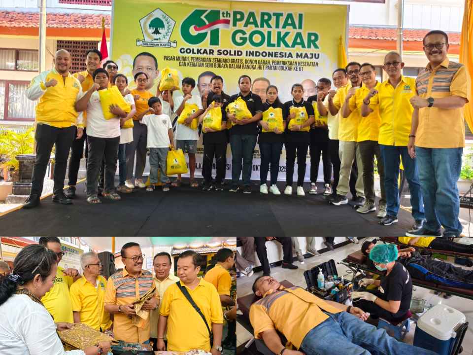 Foto: Kegiatan pasar murah dan donor darah DPD Golkar Bali serangkaian HUT ke-61 Partai Golkar.