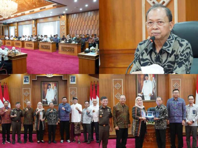 Foto: Gubernur Bali, Wayan Koster, saat rapat bersama jajaran PLN Unit Induk Pembangunan Jawa Bagian Timur dan Bali (UIP JBTB) yang membahas pembangunan Saluran Udara Tegangan Ekstra Tinggi (SUTET) 500 kV Gilimanuk–Antosari.