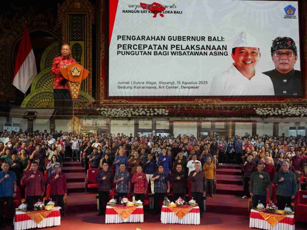 Pemerintah Provinsi Bali terus mempercepat pelaksanaan Pungutan Bagi Wisatawan Asing (PWA) dengan menetapkan ketentuan pemberian imbal jasa maksimal 3 persen bagi pihak yang membantu pemungutannya. Kebijakan ini disampaikan langsung oleh Gubernur Bali Wayan Koster dalam pengarahan di Gedung Ksirarnawa, Taman Budaya Art Centre Denpasar, Jumat (15/8/2025).