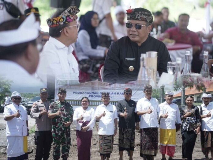 Gubernur Bali Wayan Koster didampingi Wakil Bupati Karangasem Pandu Prapanca Lagosa melaksanakan peletakan batu pertama (ngeruak/groundbreaking) pembangunan Sekolah Rakyat Provinsi Bali di Desa Tulamben, Kecamatan Kubu, Kabupaten Karangasem, Senin (23/12). Pembangunan sekolah ini menjadi tonggak penting dalam upaya memperluas akses pendidikan yang berkeadilan, khususnya bagi masyarakat di wilayah Bali Timur.