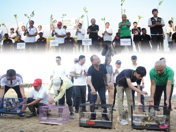 Selain penanaman, kegiatan ini juga diisi dengan pelepasan puluhan burung seperti cerucuk, kuntul, dan koak sebagai bagian dari pemulihan ekosistem pesisir.