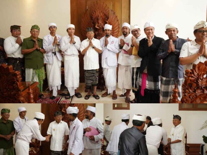 Foto: Gubernur Bali, Wayan Koster, saat menerima audiensi dari jajaran pengempon Pura Tuluk Biyu, Desa Batur, Kintamani, Bangli, di Jayasabha, Denpasar, Jumat (4/7).
