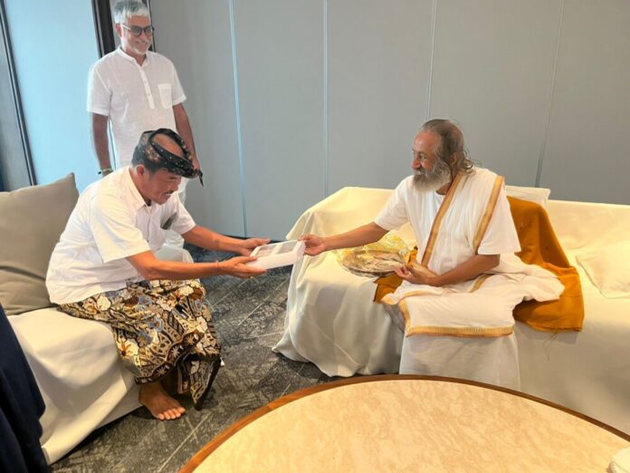 Pertemuan dua tokoh lintas budaya dan spiritual mewarnai gelaran internasional di Bali. Ketua Yayasan Kepustakaan Bung Karno, Ida Bagus Dharmika, bertatap muka langsung dengan Sri Sri Ravi Shankar, pendiri Art of Living Foundation, dalam suasana hangat penuh makna.
