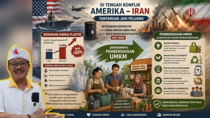 Kenaikan harga plastik akibat gejolak global imbas perang Amerika Serikat dan Iran mulai terasa hingga ke sektor usaha mikro, kecil, dan menengah (UMKM). Anggota Komisi VI DPR RI dari Fraksi Golkar dapil Bali, Gde Sumarjaya Linggih, angkat suara dan meminta pemerintah segera mengambil langkah konkret untuk meredam dampaknya.