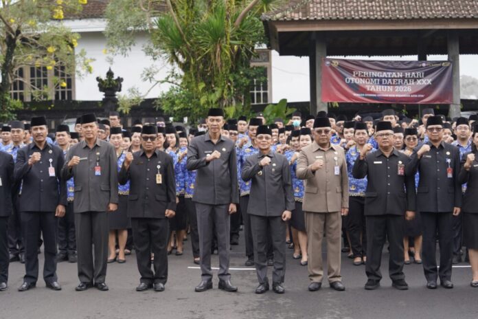 Peringatan Hari Otonomi Daerah (Otda) ke-30 Tahun 2026 di Kabupaten Klungkung berlangsung khidmat dan sarat makna. Upacara yang digelar di halaman belakang Kantor Bupati Klungkung, Senin (27/4/2026), dipimpin langsung oleh Bupati Klungkung, I Made Satria, dengan dihadiri jajaran pemerintah daerah dan unsur Forkopimda.
