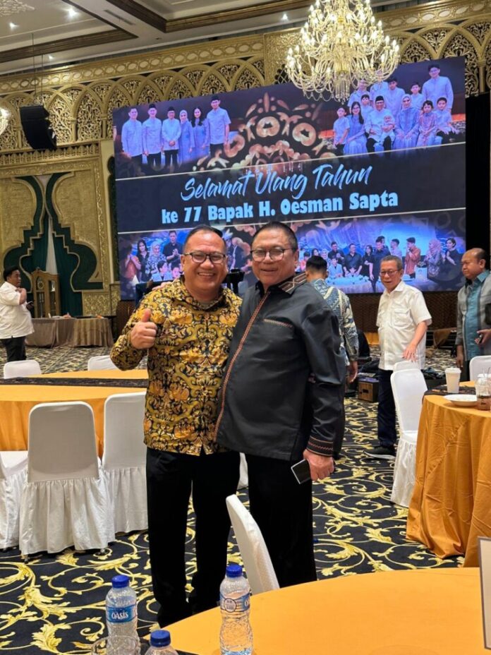 Perayaan ulang tahun ke-77 Ketua Umum Partai Hanura, Dr. H. Oesman Sapta Odang (OSO), Senin (18/8/2025) malam di kediamannya, Jakarta Selatan, menjadi ajang silaturahmi politik lintas partai dan organisasi. Sejumlah tokoh nasional hadir, dari Ketua DPR RI Puan Maharani, Menko Pangan Zulkifli Hasan, Sekjen PDIP Hasto Kristiyanto, mantan Ketum PBNU Said Aqil Siradj, Menkumham Supratman Andi Agtas, hingga pengusaha senior Aburizal Bakrie.