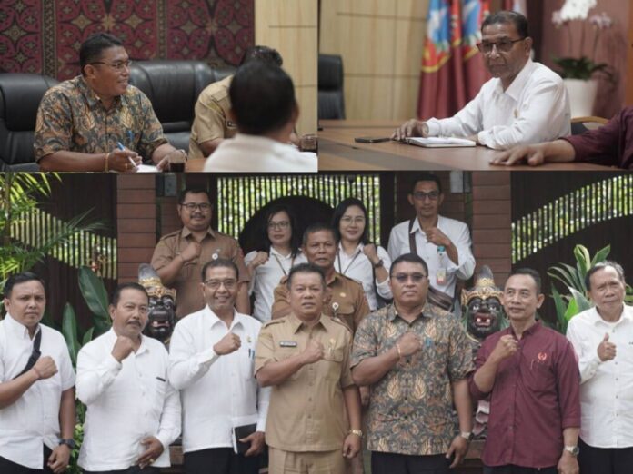 Foto: Wakil Bupati Karangasem, Pandu Prapanca Lagosa (Guru Pandu) saat menerima audiensi dari jajaran pengurus KONI dan PBVSI Karangasem, pada Senin (19/5/2025).