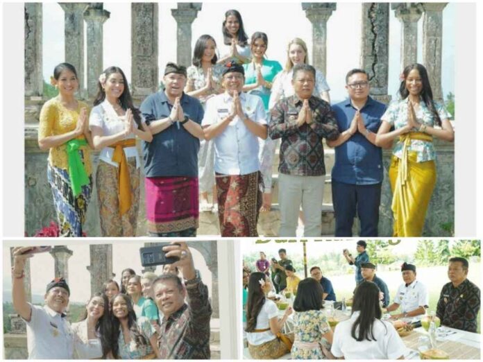 Rabu, 25 Juni, Kabupaten Karangasem menjadi panggung bagi parade pesona dan persahabatan lintas benua. Perwakilan resmi Miss Universe 2014 dari berbagai penjuru dunia datang berkunjung dalam rangkaian tur budaya dan promosi pariwisata Bali Timur. Mereka disambut dengan penuh kehangatan oleh Bupati Karangasem, I Gusti Putu Parwata—akrab disapa Gus Par—dan Wakil Bupati Pandu Prapanca Lagosa, yang tak kalah ramah menyambut kedatangan para tamu kehormatan itu.