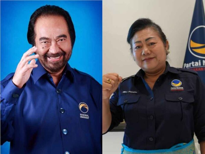 Foto: Ketua Umum Partai NasDem Surya Paloh (kiri) dan Ketua DPD Partai NasDem Karangasem, I Gusti Ayu Mas Sumatri (kanan).