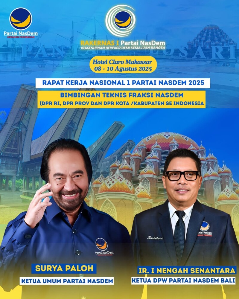 Dewan Pimpinan Wilayah (DPW) Partai NasDem Provinsi Bali menegaskan komitmennya untuk menyukseskan Rapat Kerja Nasional (Rakernas) I Partai NasDem yang akan digelar di Makassar, Sulawesi Selatan, pada 8–10 Agustus 2025.
