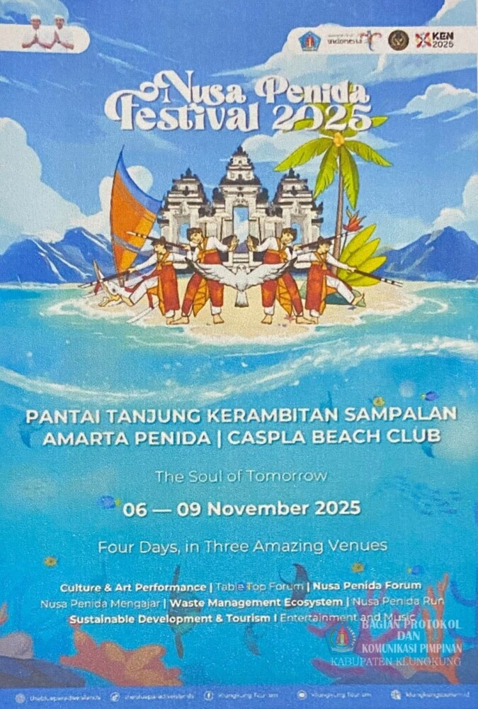 Pemerintah Kabupaten Klungkung melalui Dinas Pariwisata kembali bersiap menggelar ajang tahunan paling dinanti, Nusa Penida Festival (NPF) 2025, pada 6–9 November 2025. Perhelatan akbar ini akan dipusatkan di Pantai Tanjung Kerambitan, Desa Batununggul, serta melibatkan Caspla Beach Club dan Amarta Nusa Penida sebagai lokasi pendukung.