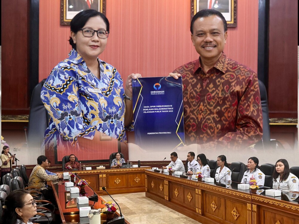 Sekretaris Daerah Provinsi Bali, Dewa Made Indra, menerima hasil opini Ombudsman Republik Indonesia terkait Penilaian Maladministrasi Pelayanan Publik Tahun 2025. Dokumen tersebut diserahkan langsung oleh Kepala Perwakilan Ombudsman RI Provinsi Bali, Ni Nyoman Sri Widianti, di Gedung Wiswa Sabha Pratama, Denpasar, Rabu (25/2/2026).