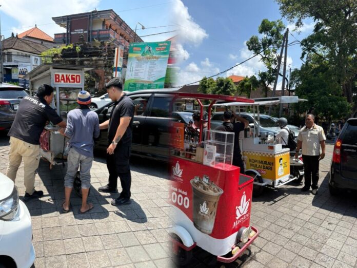 Foto: Satuan Polisi Pamong Praja Kota Denpasar saat menertibkan pedagang kaki lima (PKL) yang berjualan di kawasan Jalan Kamboja, Jumat (10/4/2026).
