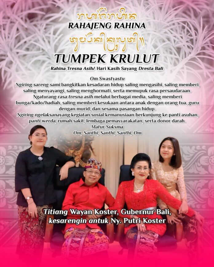Rahajeng Rahina Tumpek Krulut! Hari Kasih Sayang Dresta Bali! Gubernur Koster Ajak Saling Memberi Saling Menyayangi