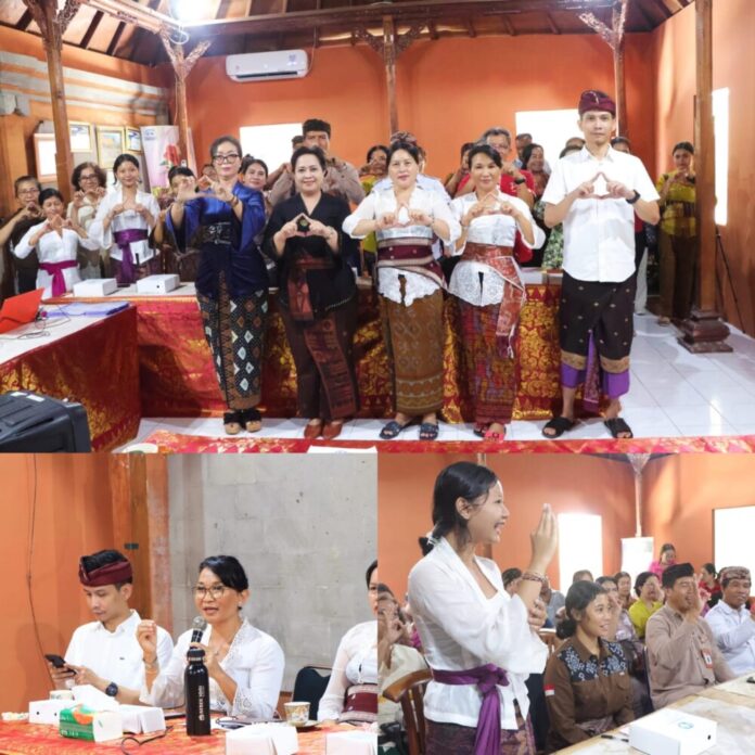 Foto: Ketua Forum Partisipasi Publik untuk Kesejahteraan Perempuan dan Anak (PUSPA) Provinsi Bali, Ny. Seniasih Giri Prasta saat menghadiri Sosialisasi KLA di Kabupaten Gianyar, Kamis (16/4/2026).