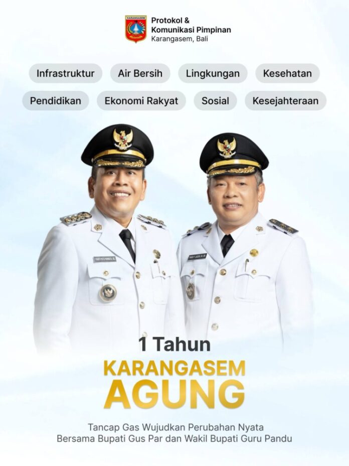 Satu tahun berjalan, arah pembangunan Karangasem kian terukur: bergerak bersama, setahap demi setahap, menuju daerah yang lebih maju, adil, dan sejahtera—dari rakyat, oleh rakyat, untuk Karangasem. (kbs)
