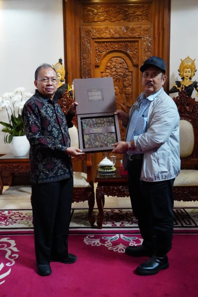Gubernur Bali Wayan Koster menerima kunjungan Menteri Perencanaan Pembangunan Nasional (PPN)/Kepala Bappenas Rachmat Pambudy di Gedung Jayasabha, Denpasar, Rabu (11/2/2026). Pertemuan itu menjadi momentum strategis bagi Bali untuk mendorong percepatan pembangunan infrastruktur darat hingga laut, sekaligus memperkuat fondasi ekonomi daerah.