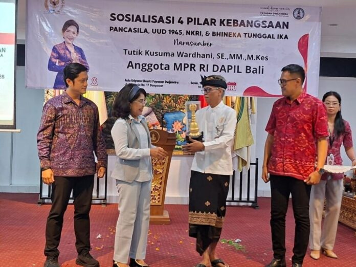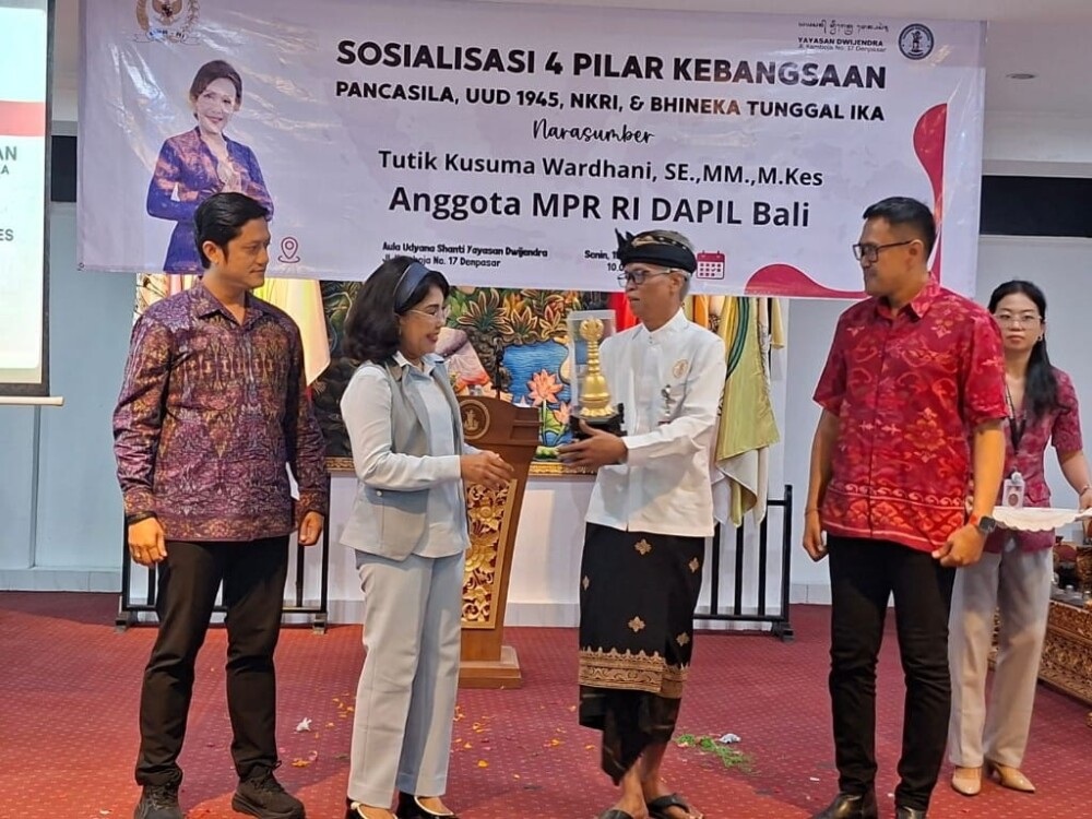 Anggota MPR/DPR RI, Tutik Kusuma Wardhani, mengajak generasi muda, khususnya mahasiswa Universitas Dwijendra (Undwi), untuk memperkuat wawasan kebangsaan sebagai fondasi membangun sumber daya manusia unggul menuju Indonesia Emas 2045. Ajakan tersebut disampaikan dalam kegiatan Sosialisasi Empat Pilar Kebangsaan yang digelar di Denpasar, Senin (15/12).