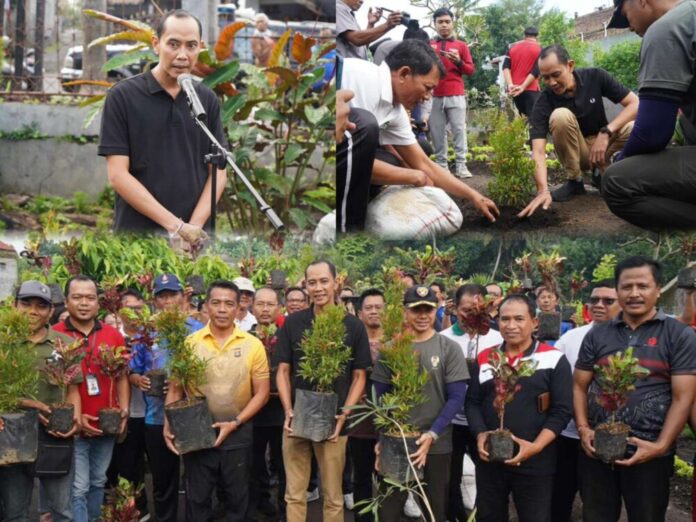 Simbolisasi peluncuran dilakukan melalui penanaman pohon hias oleh Wabup Tjok Surya bersama anggota Forkopimda dan sejumlah kepala OPD yang turut menyumbangkan bibit tanaman.
